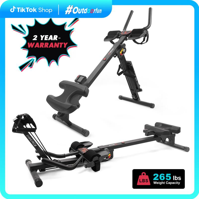 2-in-1 Adjustable Rowing and Ab Crunch Machine with LCD Monitor - Foldable Home Workout Equipment for Effective Stomach Exercises