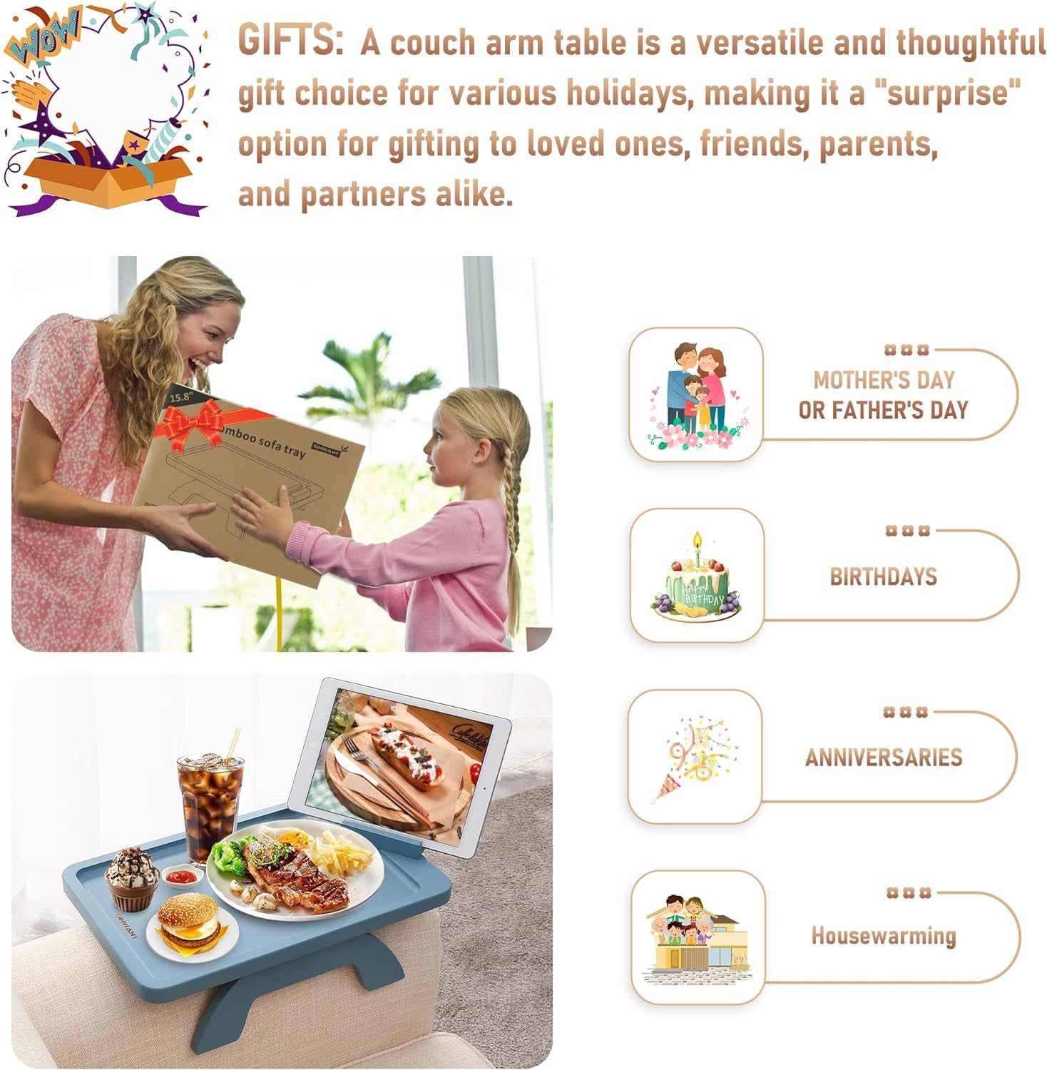- 🎁The Perfect Gift for Lover One:Why Everyone Will Love It- With this couch armrest table, their coffee stays steady, the remote is always within reach, and their phone/tablet rotates 360° for cozy movie nights or video calls. Give the gift of ultimate couch comfort ! Whether for your partner, parents, or best friend, once they try it, they'll wonder how they ever lived without it.