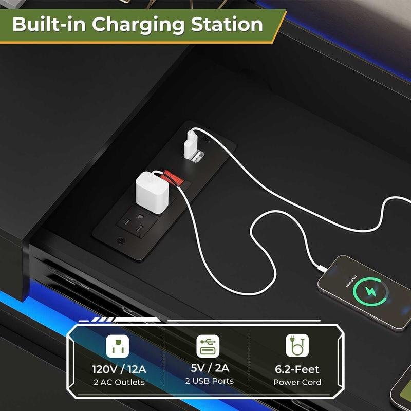 Sikaic Modern LED Dresser with Charging Station & Sliding Drawers - Stylish Storage Tower for Bedroom Organization