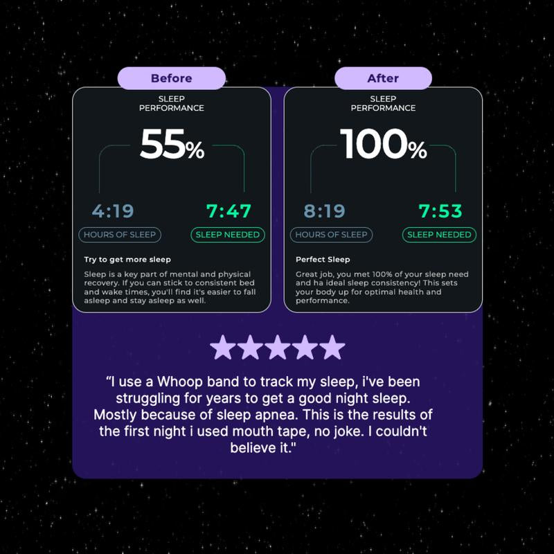 • Suitable for Everyone: Whether you're a snorer, mouth breather, or just seeking a better night's sleep, our mouth tape is suitable for adults of all ages.