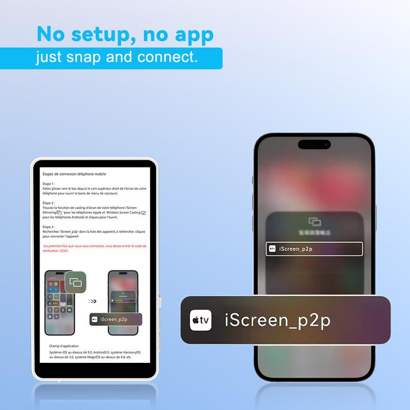• Wireless Cross-Platform Mirroring: Supports iOS, Android, and HarmonyOS via 5G/2.4G Wi-Fi with no app required.