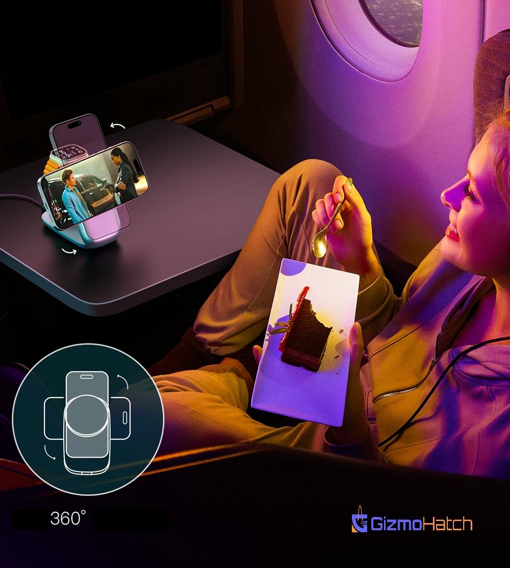 Strong MagSafe alignment locks your device instantly into place—no fumbling with cords. Supports portrait or landscape mode so you can scroll, stream, or FaceTime while charging.
