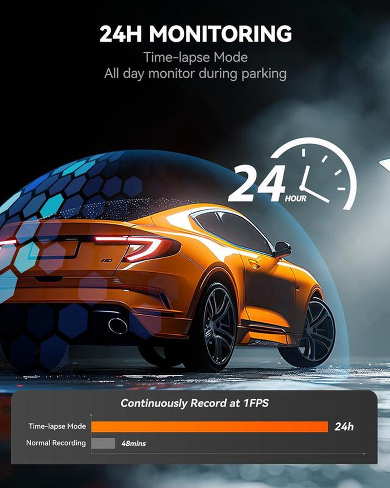 • 24-HOUR PARKING MONITOR (A hardwire kit is required for parking monitoring.)