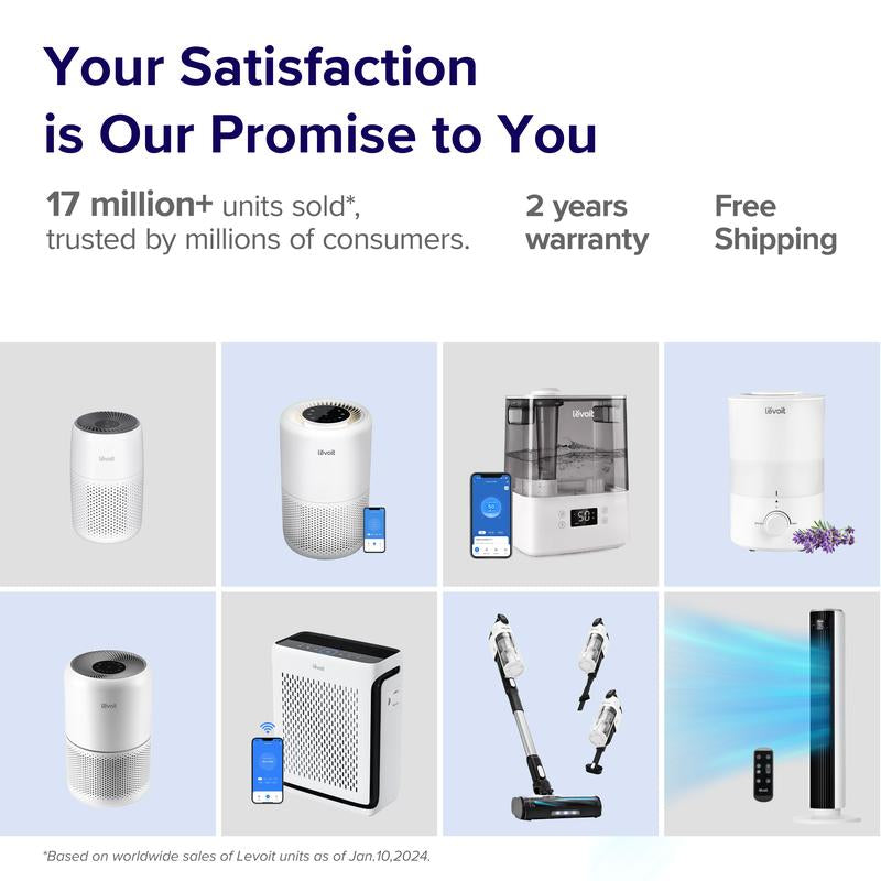 A: Specifically, our Core Series, LV-H133, and Vital Series all feature True HEPA filters designed to remove 99.97% of airborne particles, including dust, pollen, smoke, and other pollutants. Our True HEPA filters combined with activated carbon filters can help reduce airborne contaminants.