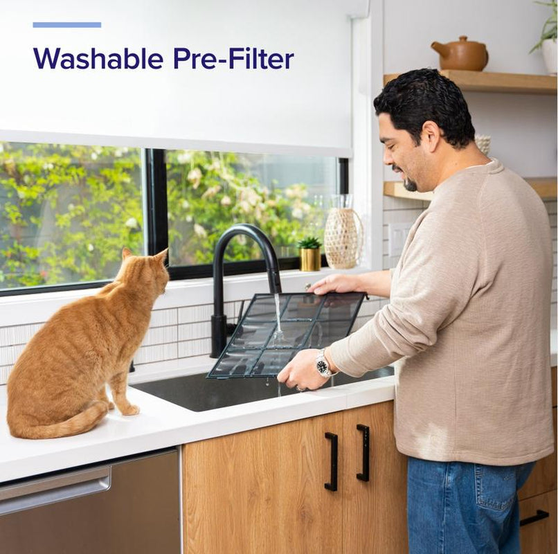 3-STAGE FILTRATION: Cleaning the Washable Pre-Filter helps the 3-stage filtration system last longer. The HEPA Filter traps pet dander, pollen, and more, while the High-Efficiency Activated Carbon Filter helps neutralize pet odors, fumes, and VOCs